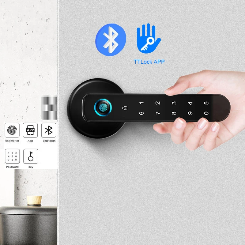 New Biometric Fingerprint Door Lock Password Handle Bluetooth Ttlock App Unlock Keyless Entry Wooden Smart Lock Optional Wifi Fingerprint Lock Aliexpress